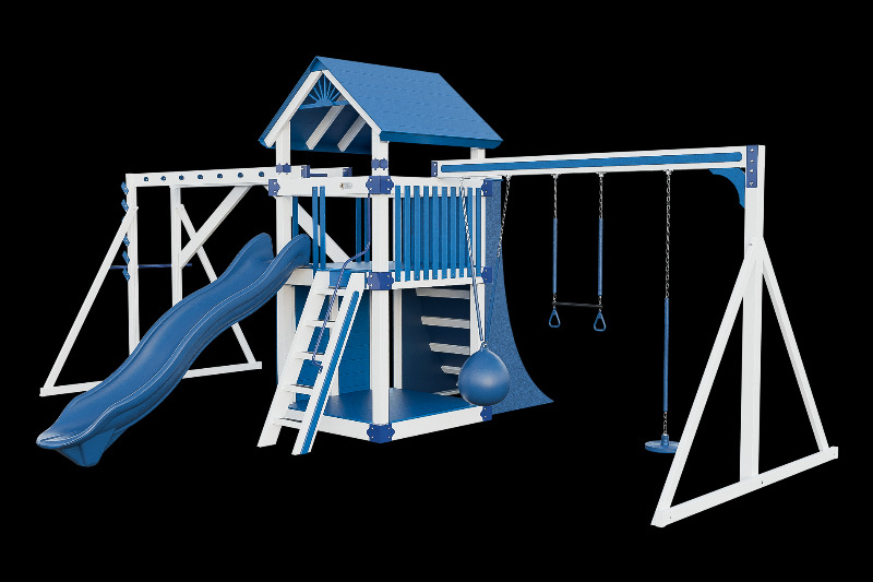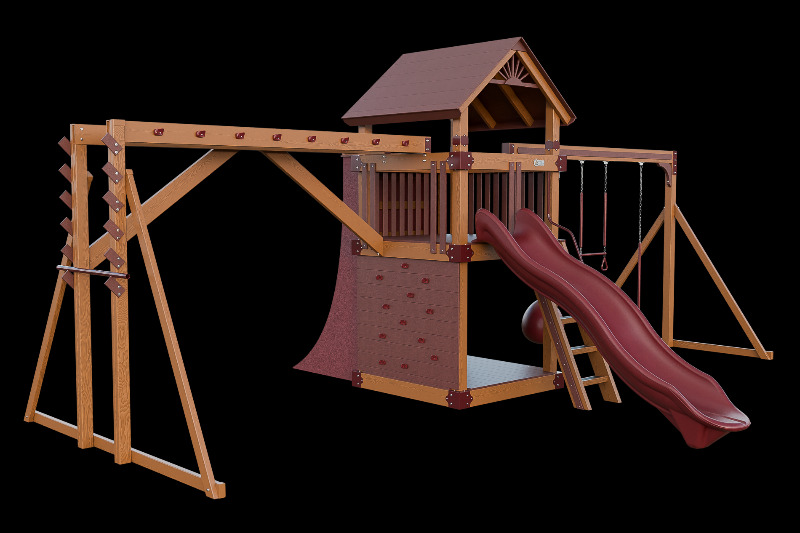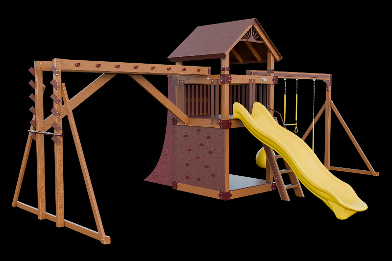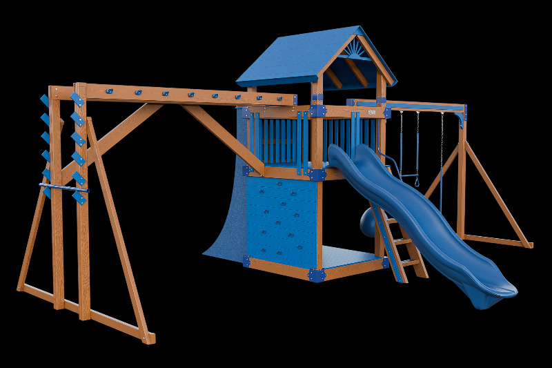 This combo playset is designed to provide your little ninja with hours of fun and adventure. It features a variety of climbing challenges, such as the Salmon Ladder, the V-climber, monkey bars, and even a warp wall to test your skills! The vertical rock wall will test their strength and agility, while the easy access ladder will allow them to reach the top of the playset. The 10ft Avalanche slide will offer them a thrilling ride down. This playset is ideal for developing motor skills and encouraging physical activity.