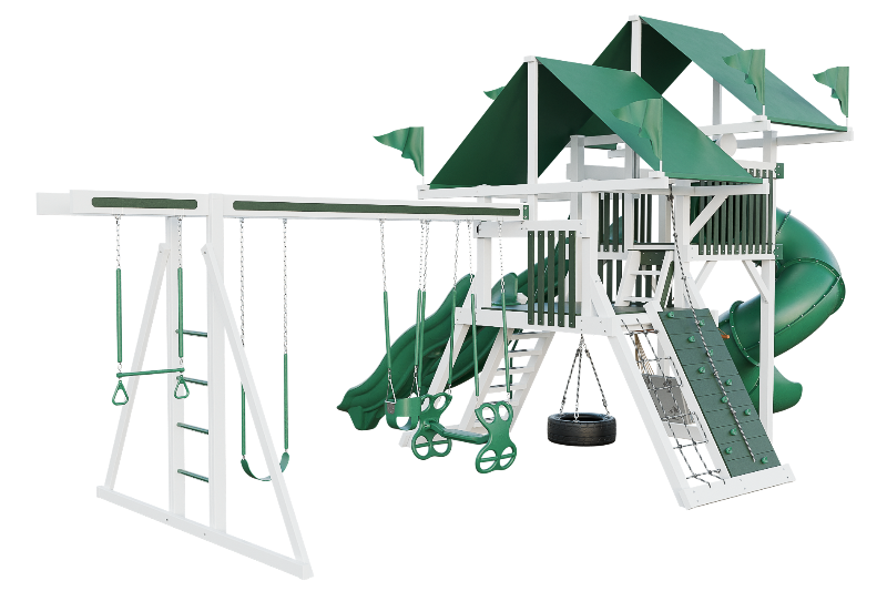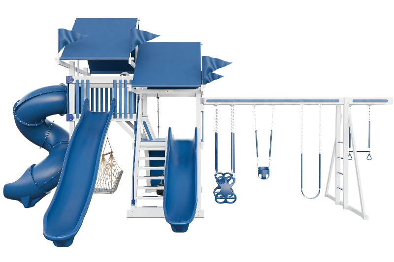 If you are looking for a playset that will keep your kids entertained and challenged, look no further than this amazing product. This playset features a 5' MC ladder that provides easy access to the tower, where your kids can enjoy three different slides: a 10' avalanche slide, a 14' avalanche slide, and a 7' turbo twister slide. They can also swing on one of the six swinging options, including a belt swing, a trapeze bar, a tire swing, a dual glider, a hammock swing and an infant swing. For more adventurous kids, this playset also offers a rock wall and a cargo net that will test their strength and agility. This playset is perfect for kids of all ages and abilities and will provide hours of fun and exercise.