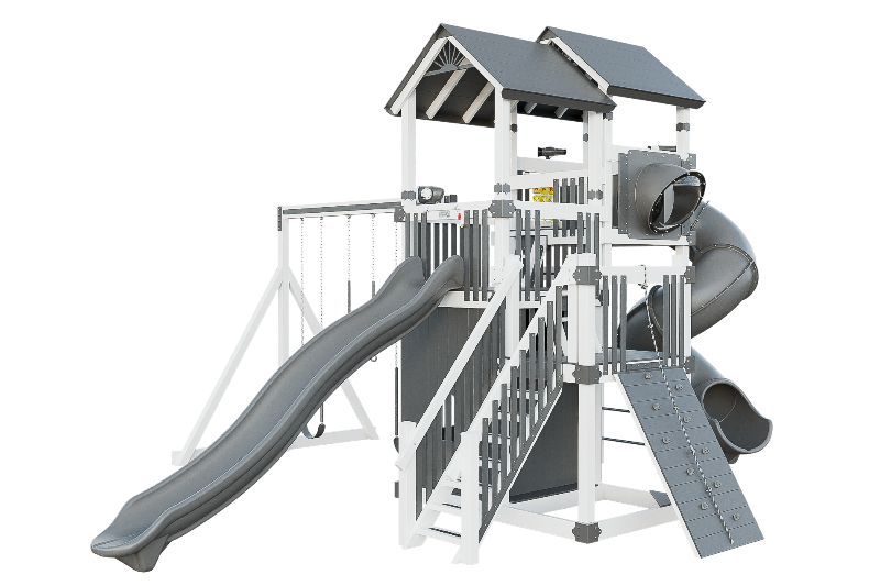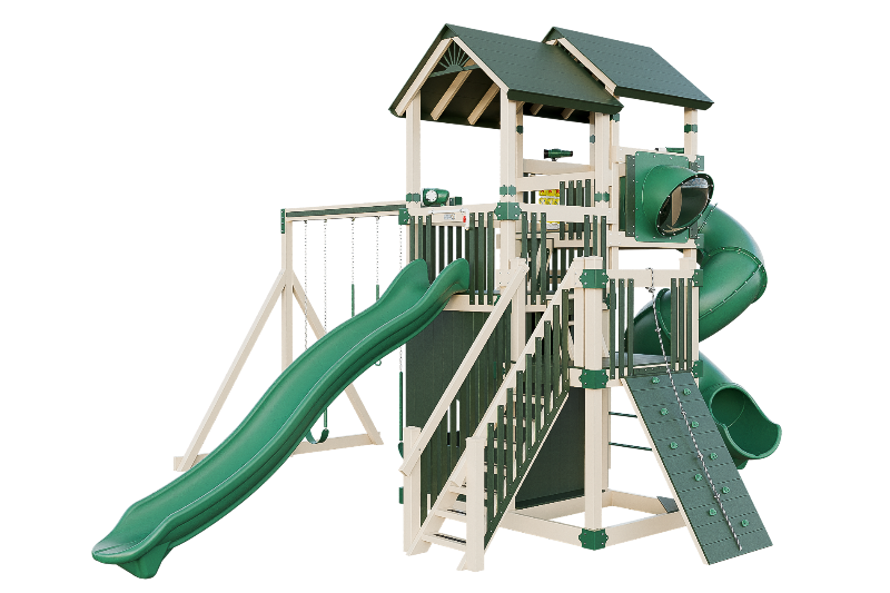 Fun Items: Waterslide Adapter, 5' Fire Pole, Binoculars, Spotlight, 5' x 5' Clubhouse Decking, (4) Clubhouse Walls, Tic-Tac-Toe, Bubble Tunnel