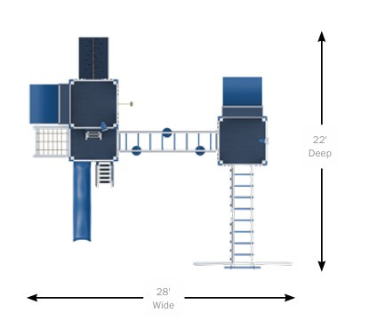 Access: 5' Access Ladder w/ Railings, (2) Tower Mounting Ladders, 5' x 5' Vertical Cargo Net, 3' x 7' Rock Wall w/ Rope, 4' x 5' Cargo Net